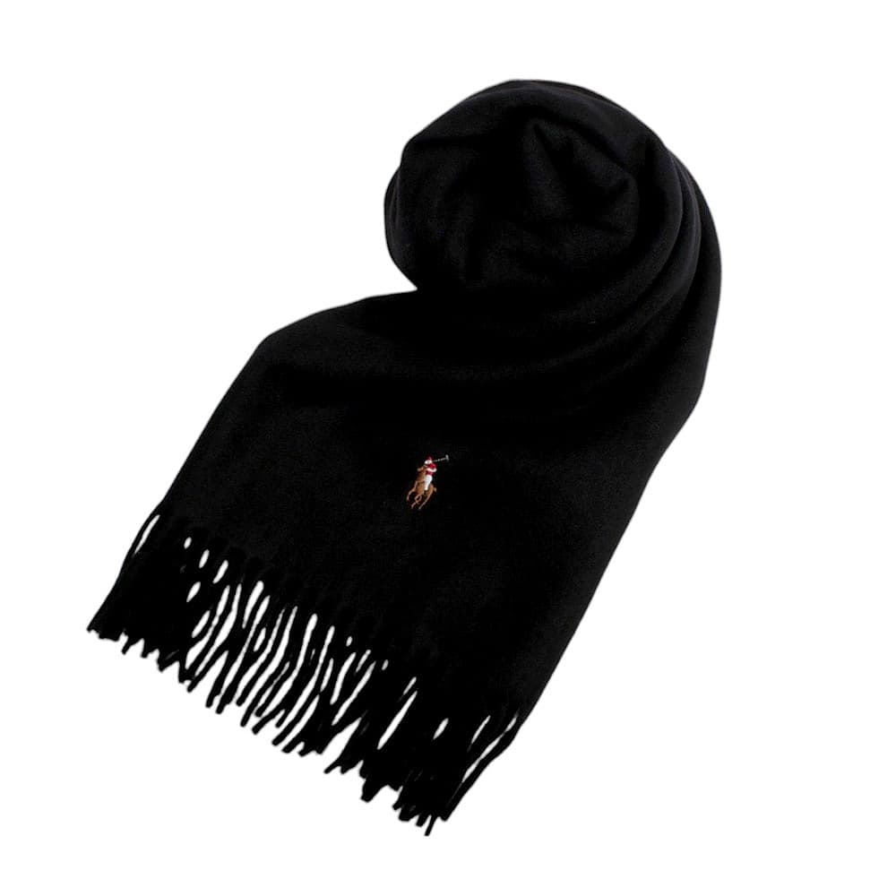ポロラルフローレン マフラー メンズ&レディース Polo Ralph Lauren ウール ロゴ フリンジ ブラック