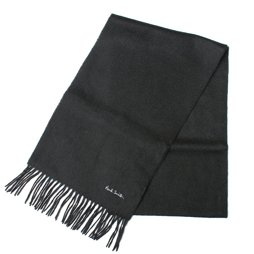 ポールスミス(Paul Smith)ラムウール フリンジ ロゴ 無地 シンプル マフラー(ブラック)