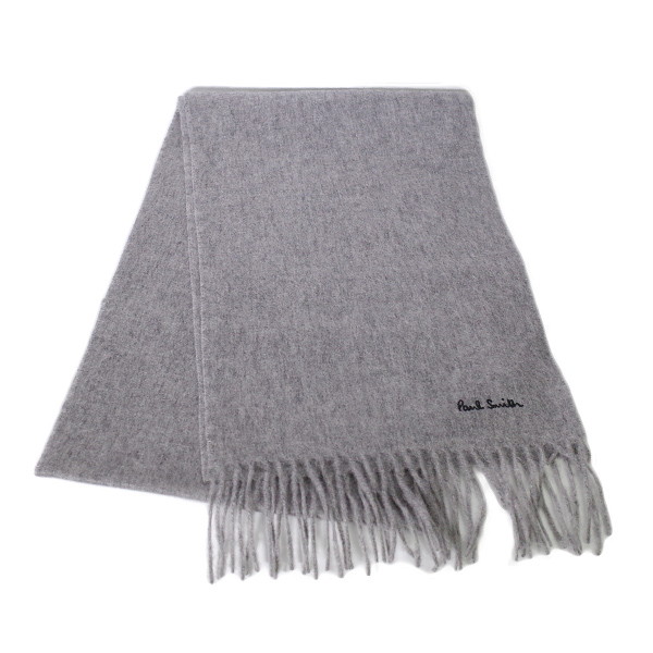 ポールスミス(Paul Smith)ラムウール フリンジ ロゴ 無地 シンプル マフラー(ライトグレー)