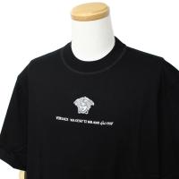 ヴェルサーチェ(VERSACE)半袖 クルーネック ロゴ メドゥーサモチーフ 刺繍 Tシャツ Lサイズ(ブラック)