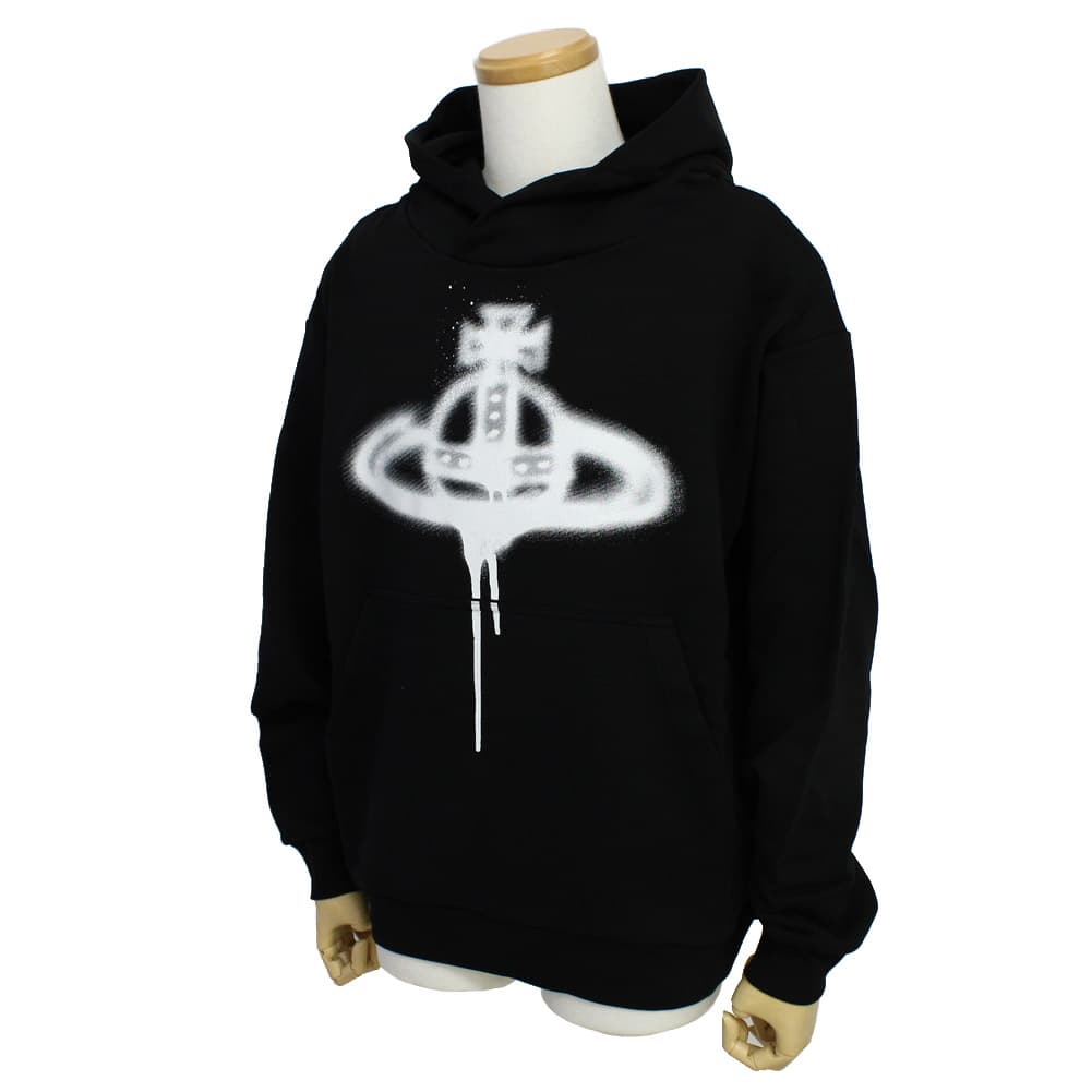 ヴィヴィアンウエストウッド パーカー メンズ SPRAY ORB PULLOVER VIVIENNE WESTWOOD プルオーバー 長袖 ロゴスプレーアート XSサイズ ブラック