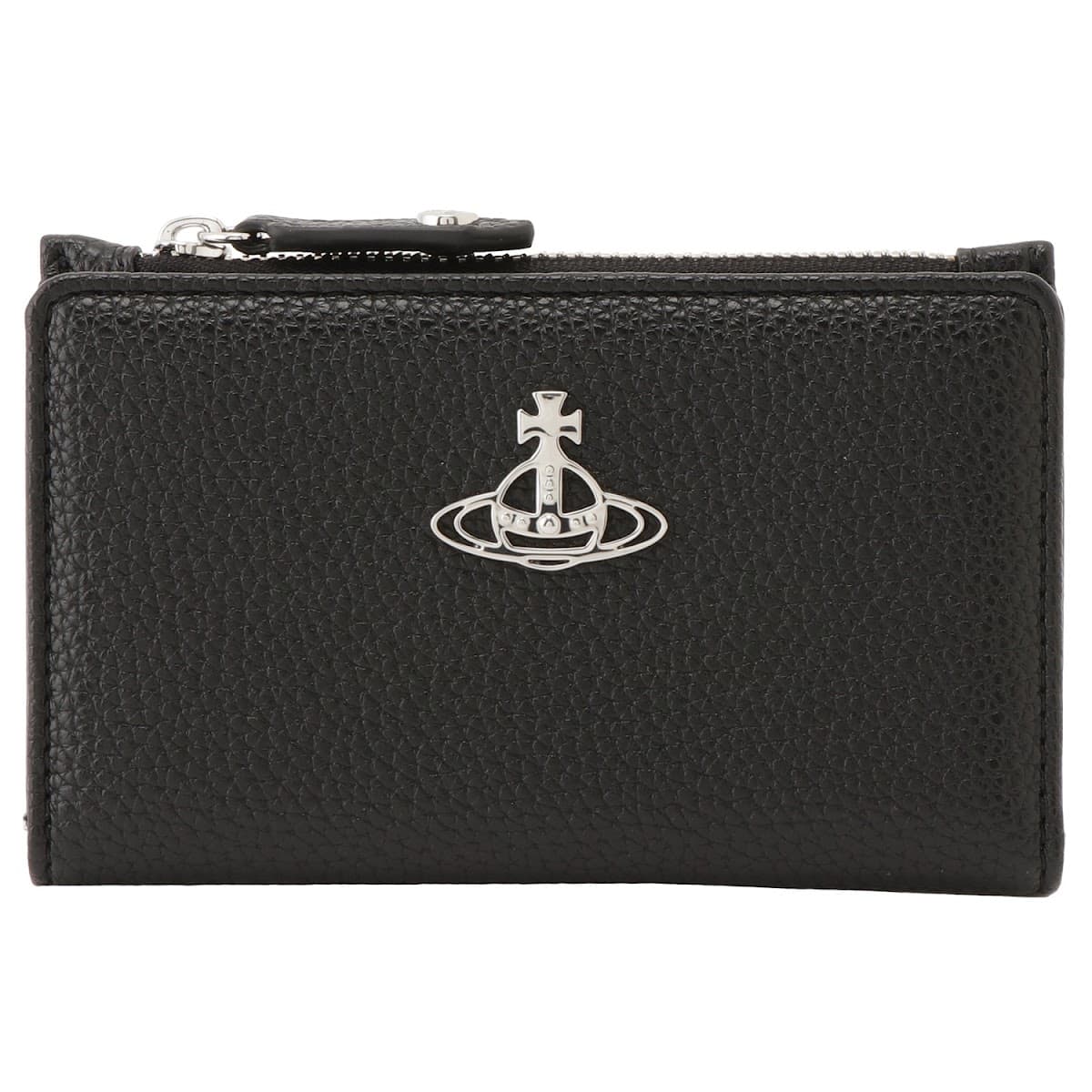 ヴィヴィアンウエストウッド(VIVIENNE WESTWOOD)RE-VEGAN GRAIN SLIM FLAP CARD HOLDER レザー 無地 オーブロゴ コインケース(ブラック/シルバー)