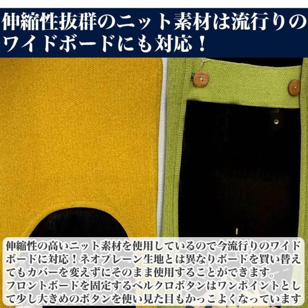 伸縮性の高いニット素材で制作しているので流行りのワイドボードも簡単に装着することができます。