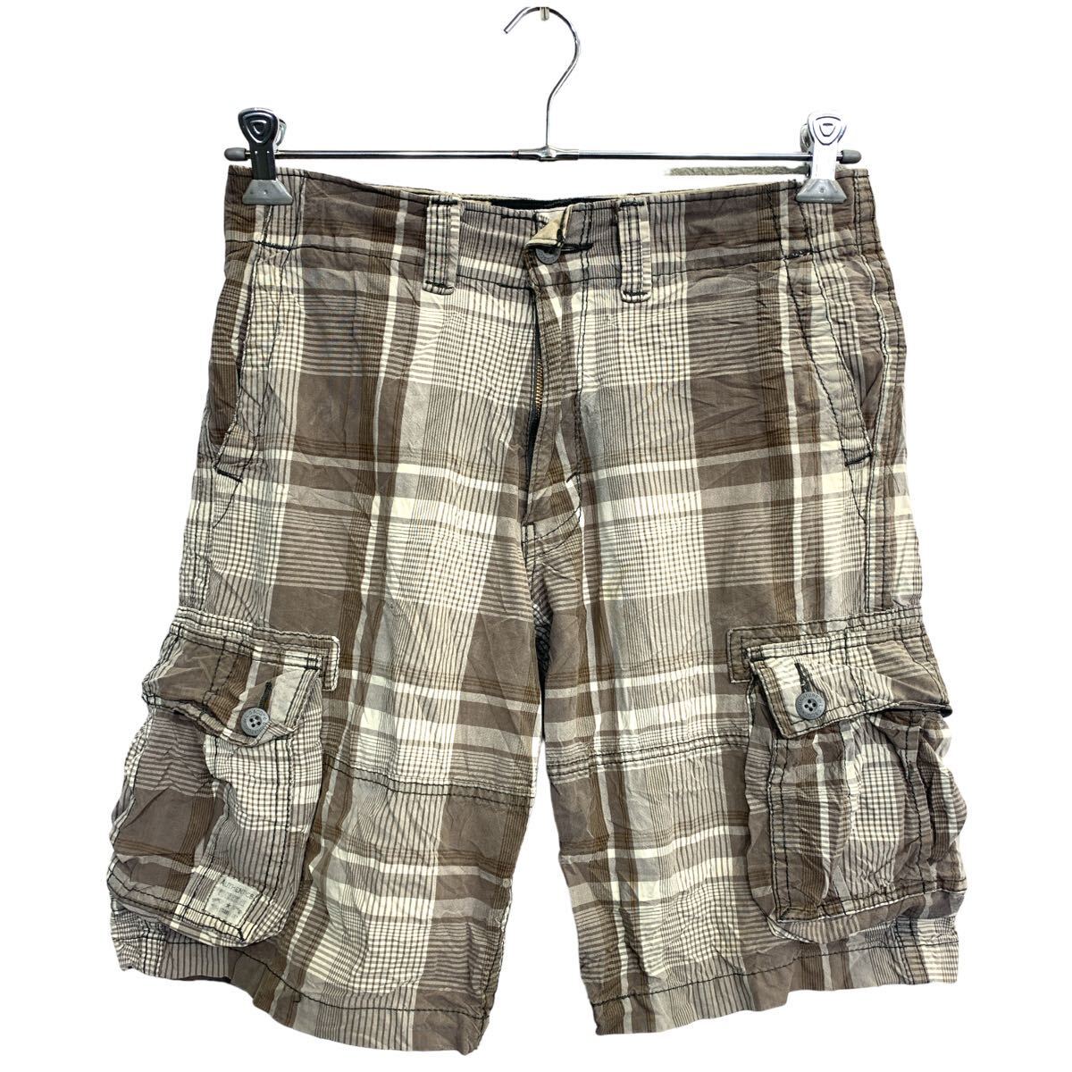 AUTHENTICS カーゴショートパンツ W30 チェック ブラウン コットン 古着卸 アメリカ仕入 2403-427