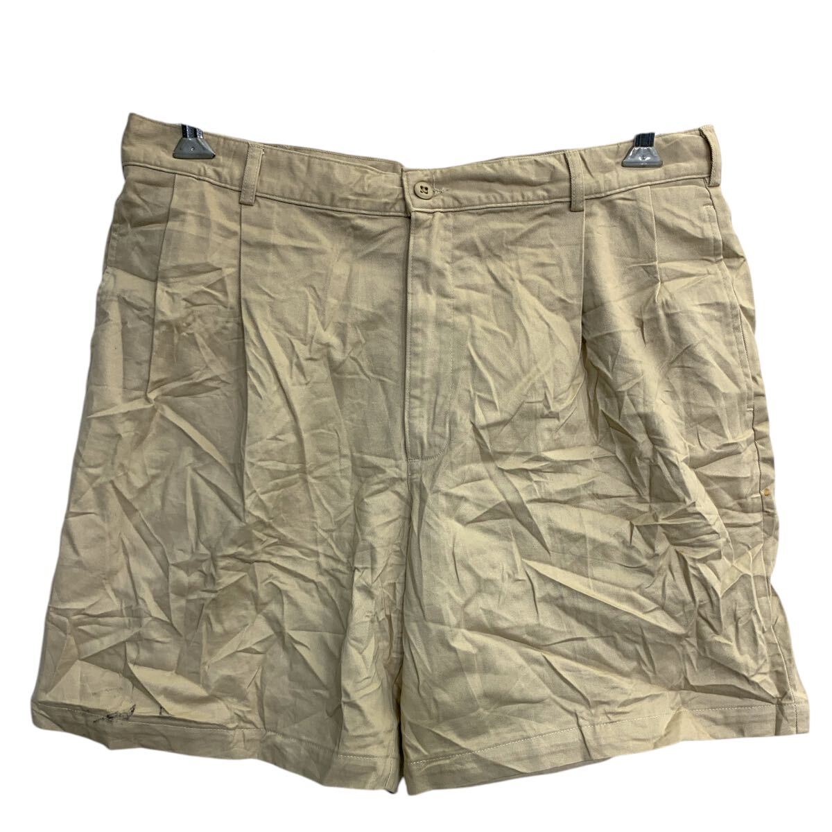LANDS'END チノショートパンツ W37 ランズエンド タックパンツ ビッグサイズ ベージュ コットン USA製 古着卸 アメリカ仕入 2502-1053