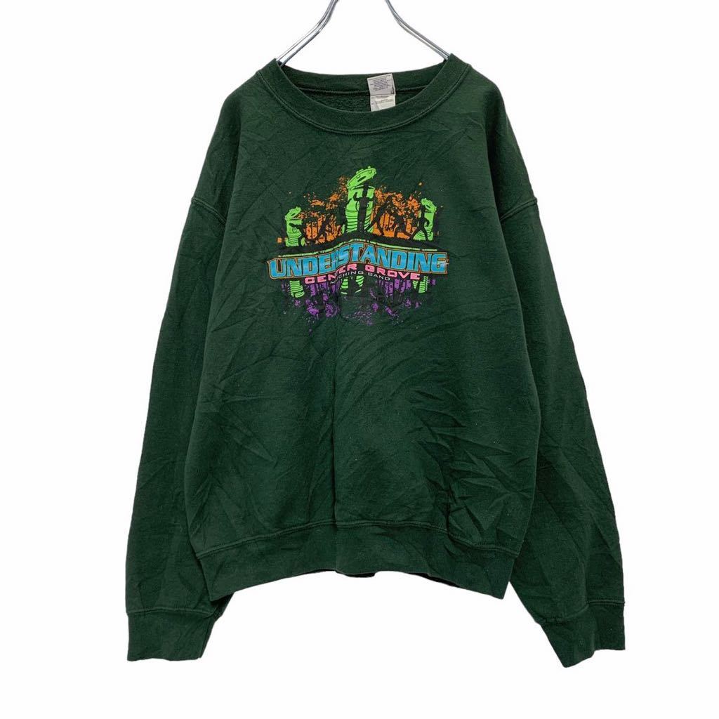 GILDAN プリント スウェット トレーナー M グリーン ギルダン バックプリント 古着卸 アメリカ仕入 a503-5153