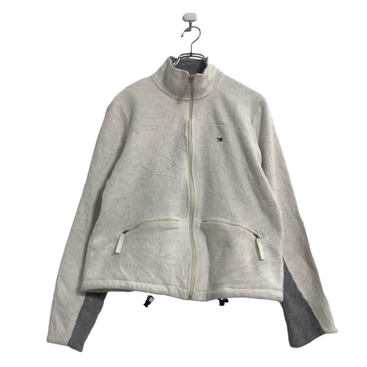 TOMMY HILFIGER フリース ジャケット レディース L ホワイト グレー トミーヒルフィガー ジップアップ 古着卸 アメリカ仕入 a510-5583