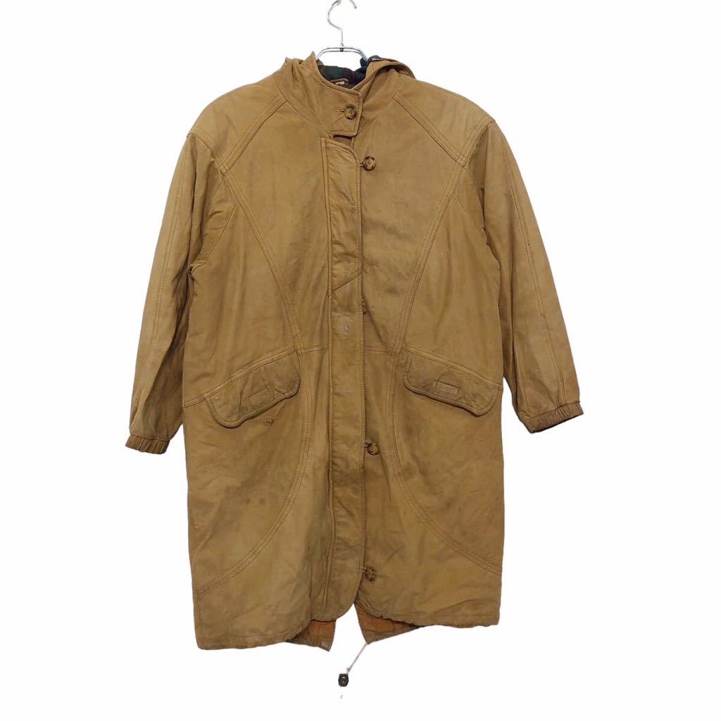 レザー コート レディース 4 XS〜 ブラウン フーディー ジップアップ ボタン ポケット 古着卸 アメリカ仕入 a601-5364