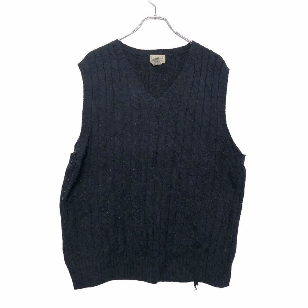 L.L.Bean 混紡 ニット ベスト L ブラック エルエルビーン ウール Vネック ケーブル編み 古着卸 アメリカ仕入 a601-5655