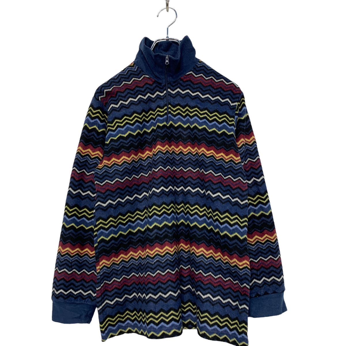 SERENATA ハーフジップ フリースジャケット L〜 ネイビー マルチカラー ボーダー 古着卸 アメリカ仕入 a602-5354
