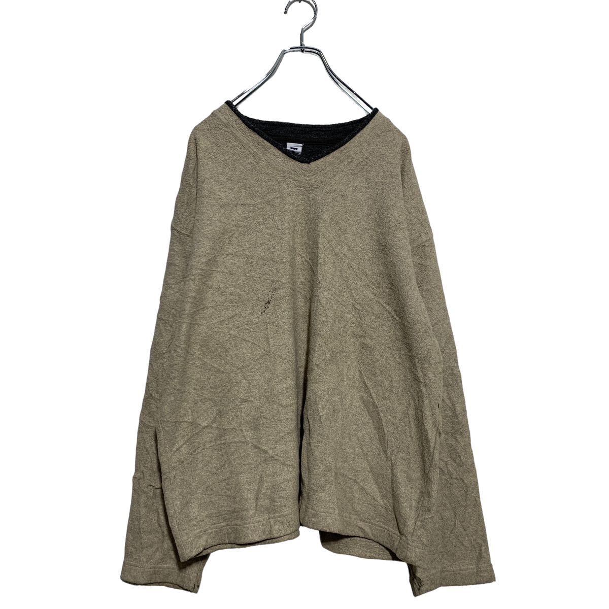 GAP Vネック フリース プルオーバー XL ベージュ グレー ギャップ ビッグサイズ シンプル 古着卸 アメリカ仕入 a603-5667