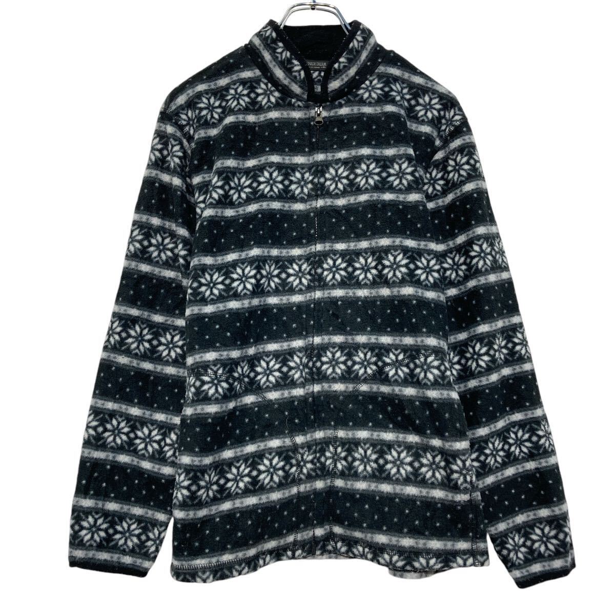 PROMENADE DREAM フリース ジャケット M ブラック 総柄 フルジップ アウトドア 古着卸 アメリカ仕入 a609-5563