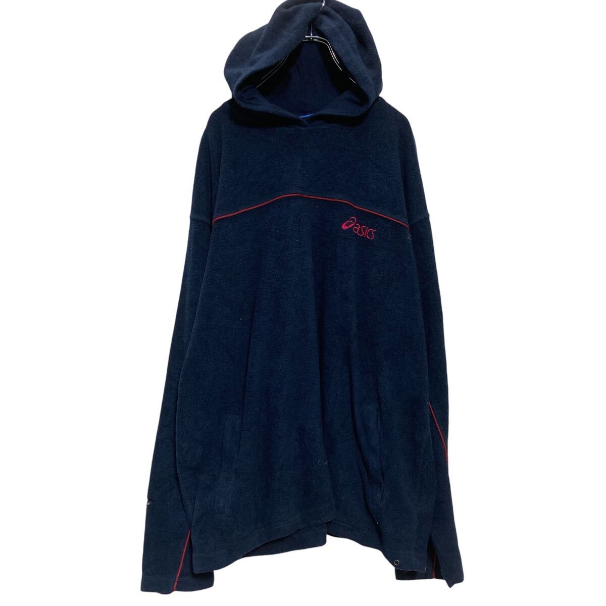 asics ロゴ フリース パーカー 2XL ネイビー アシックス ビッグサイズ 刺繍ロゴ 古着卸 アメリカ仕入 a610-5897
