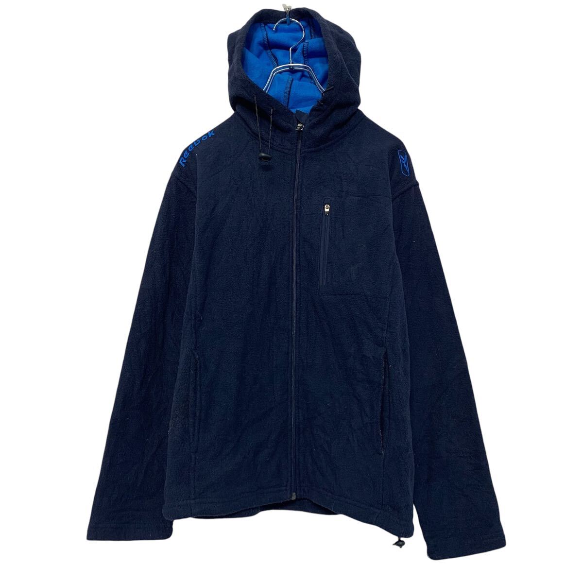 Reebok フリース ジャケット リーボック M 程 ネイビー ブルー フルジップ フード付き ワンポイント ロゴ 古着卸 アメリカ仕入 a610-5998