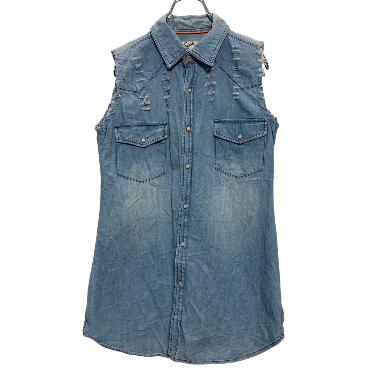 Stray ノースリーブ ダンガリー ウエスタンシャツ M ライトブルー ベスト 古着卸 アメリカ仕入 a610-6570