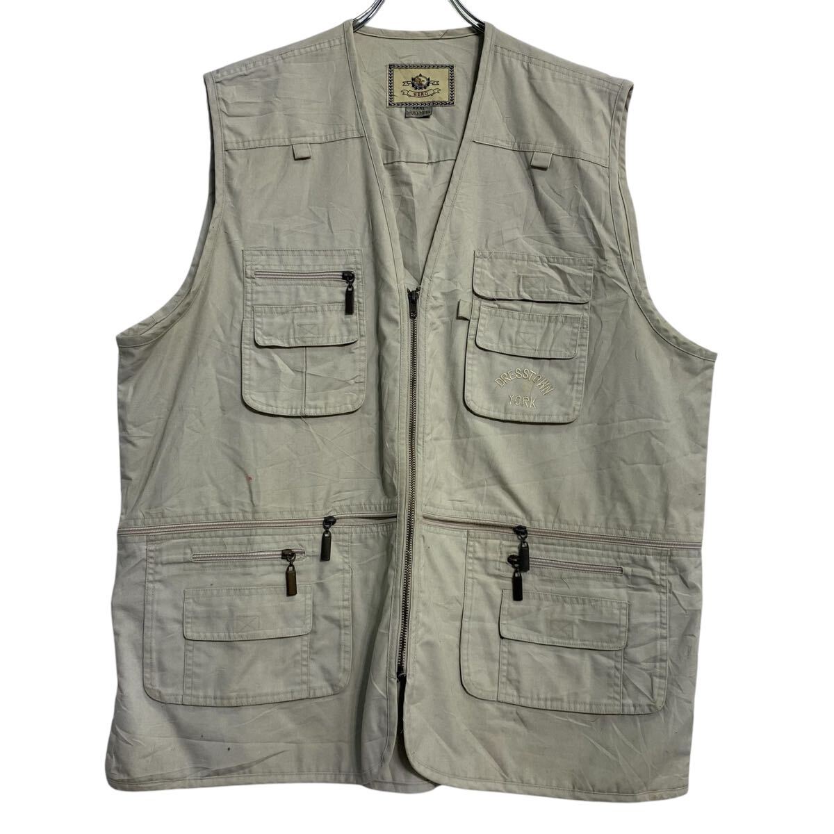 フィッシングベスト XXXL ベージュ ジップアップ ビッグサイズ ワンポイント 刺繍 ポケット 古着卸 アメリカ仕入 a611-6215