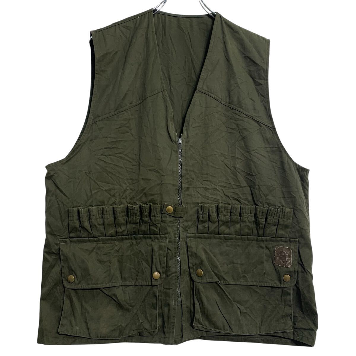 ハンティングベスト M 程 カーキ ジップアップ ポケット アウトドア 薄手 古着卸 アメリカ仕入 a611-7691