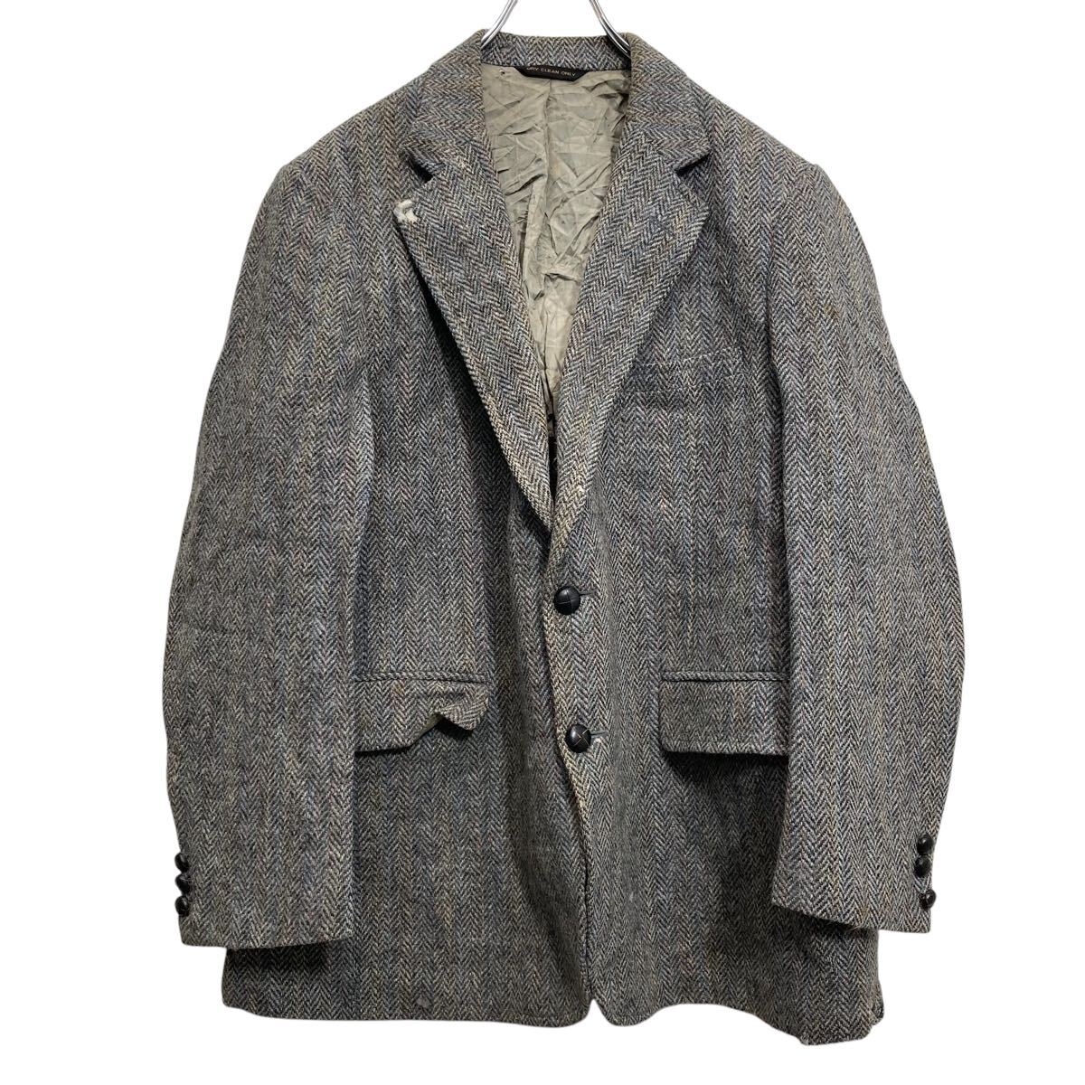 Harris tweed テーラードジャケット ハリスツイード L~ グレー ブレザー フォーマル 古着卸 アメリカ仕入 a612-6045