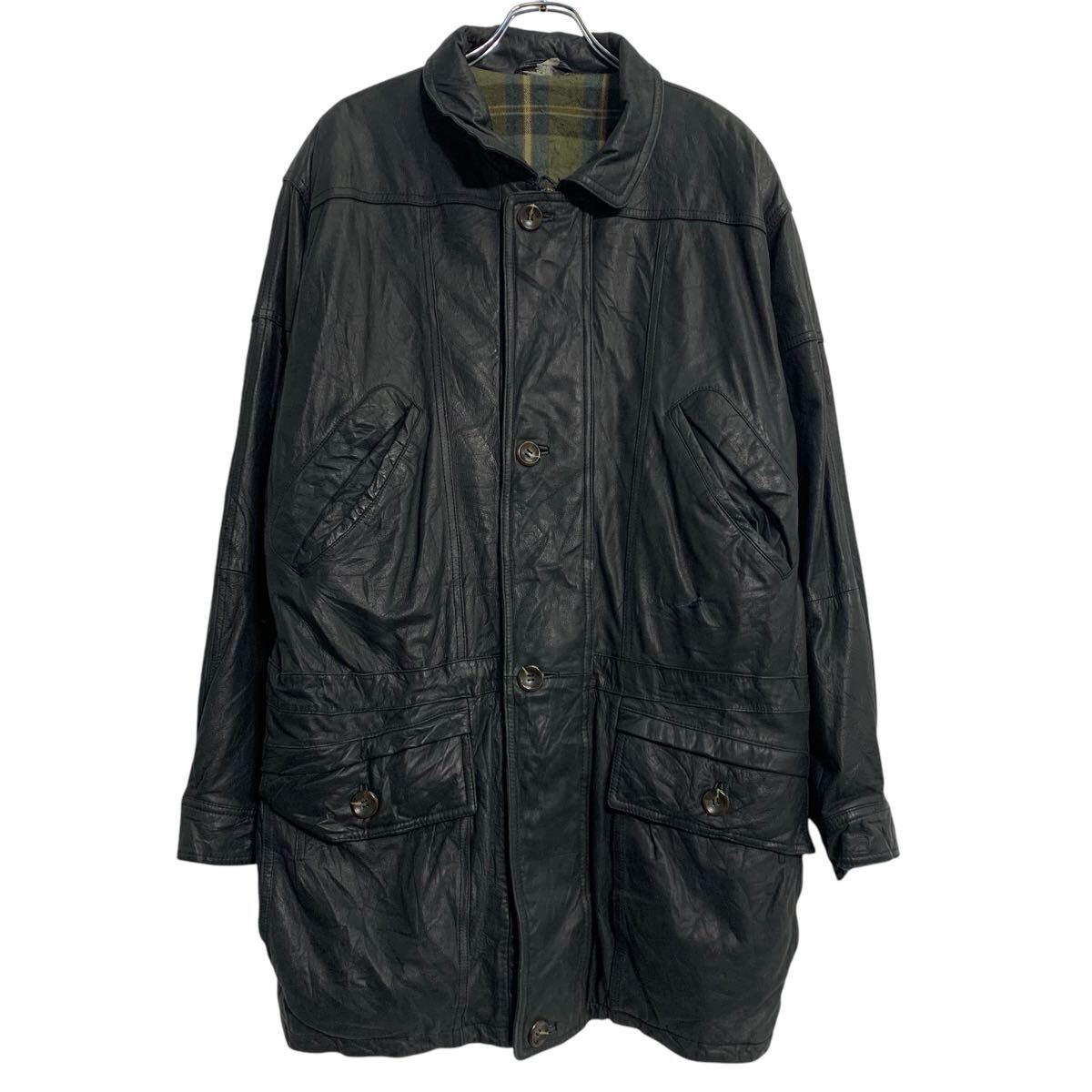 レザージャケット L 程 ブラック ジップアップ 裏チェック マルチポケット 防寒 アウター 古着卸 アメリカ仕入 a612-6881