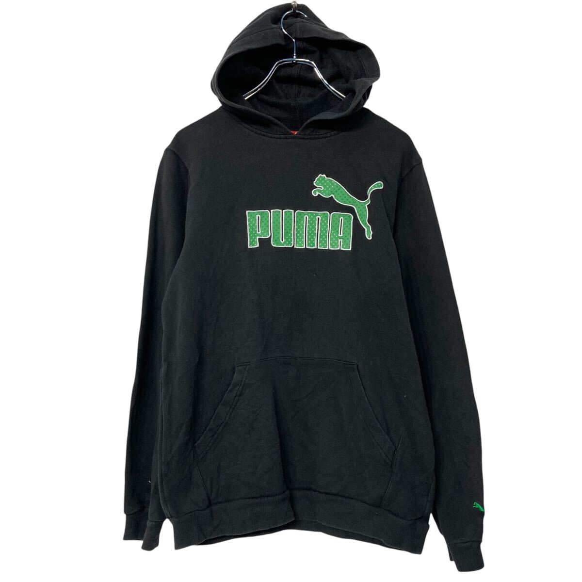 PUMA ロゴスウェット パーカー キッズ XL ブラック プーマ プルオーバー 裏起毛 カンガルーポケット 古着卸 アメリカ仕入 a612-7367