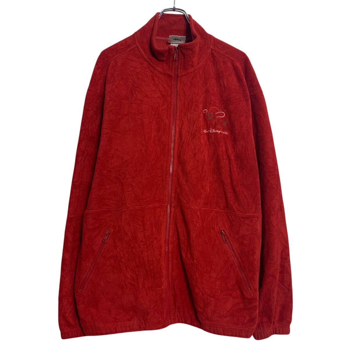 Disney フリースジャケット L レッド ディズニー ジップアップ ワンポイント 刺繍 アウトドア 古着卸 アメリカ仕入 a612-7705