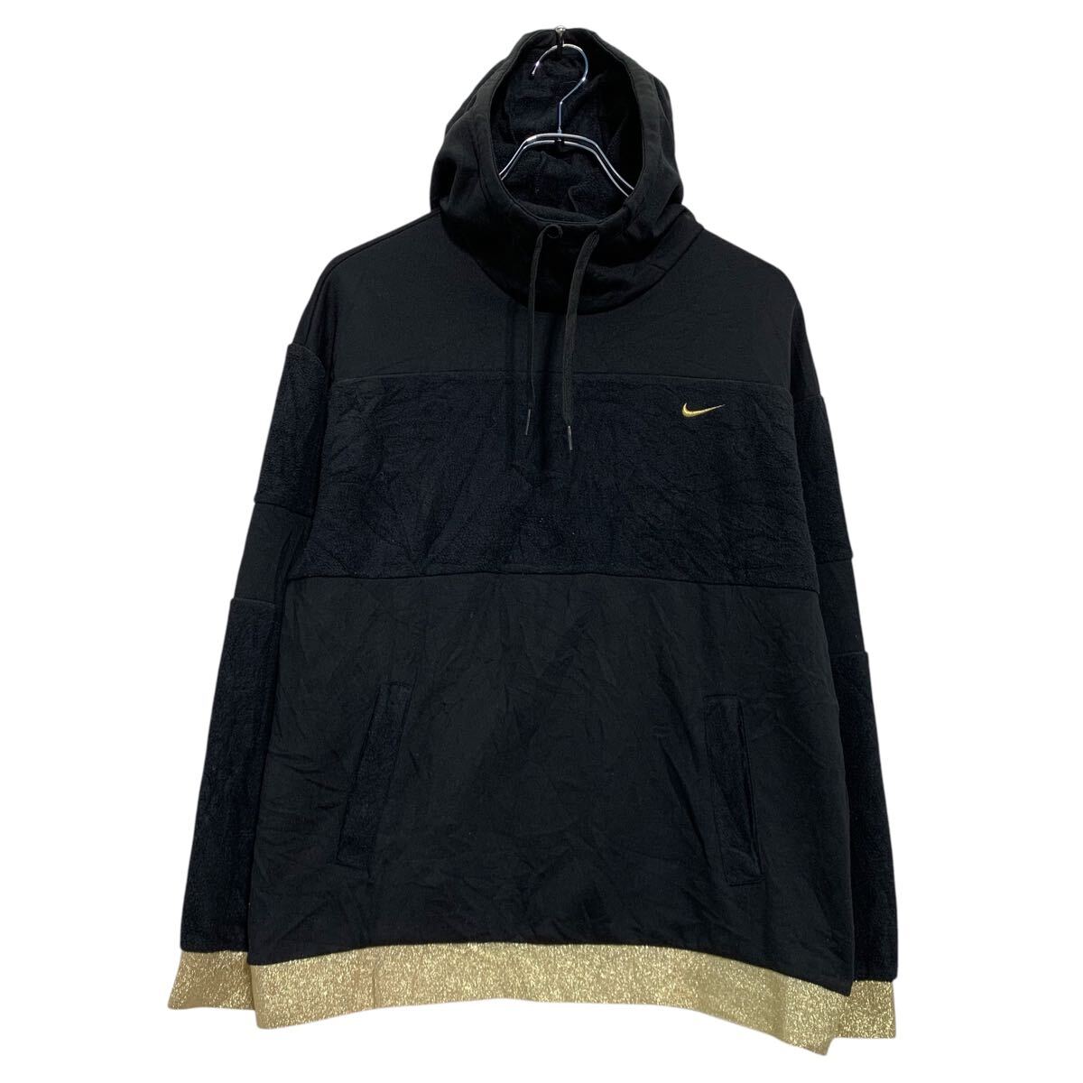 NIKE ロゴスウェット パーカー S ブラック ゴールド ナイキ プルオーバー フリース 切替 古着卸 アメリカ仕入 a612-8403