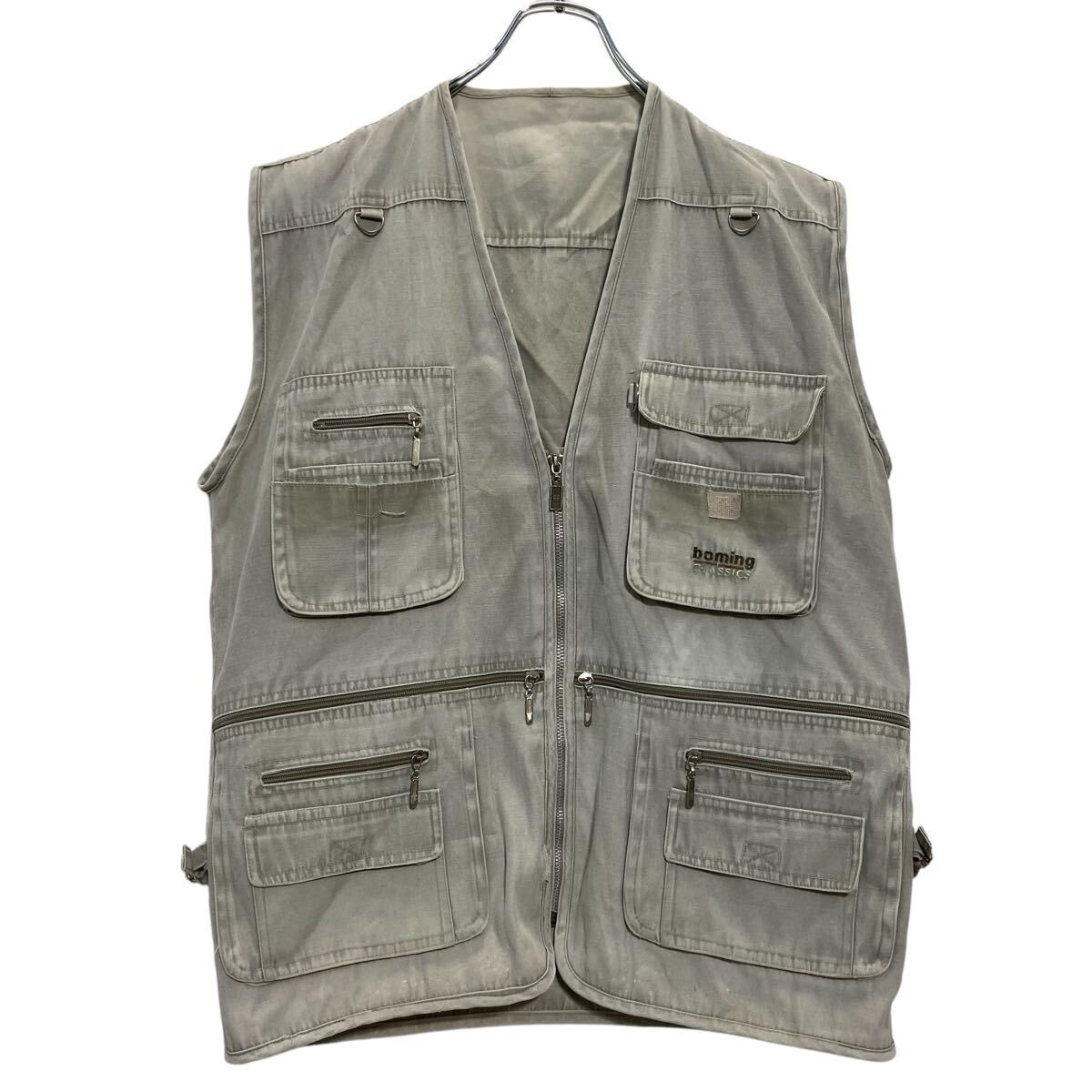 フィッシングベスト 2XL〜 ライトグレー ビッグサイズ マルチポケット アウトドア 古着卸 アメリカ仕入 a701-7078