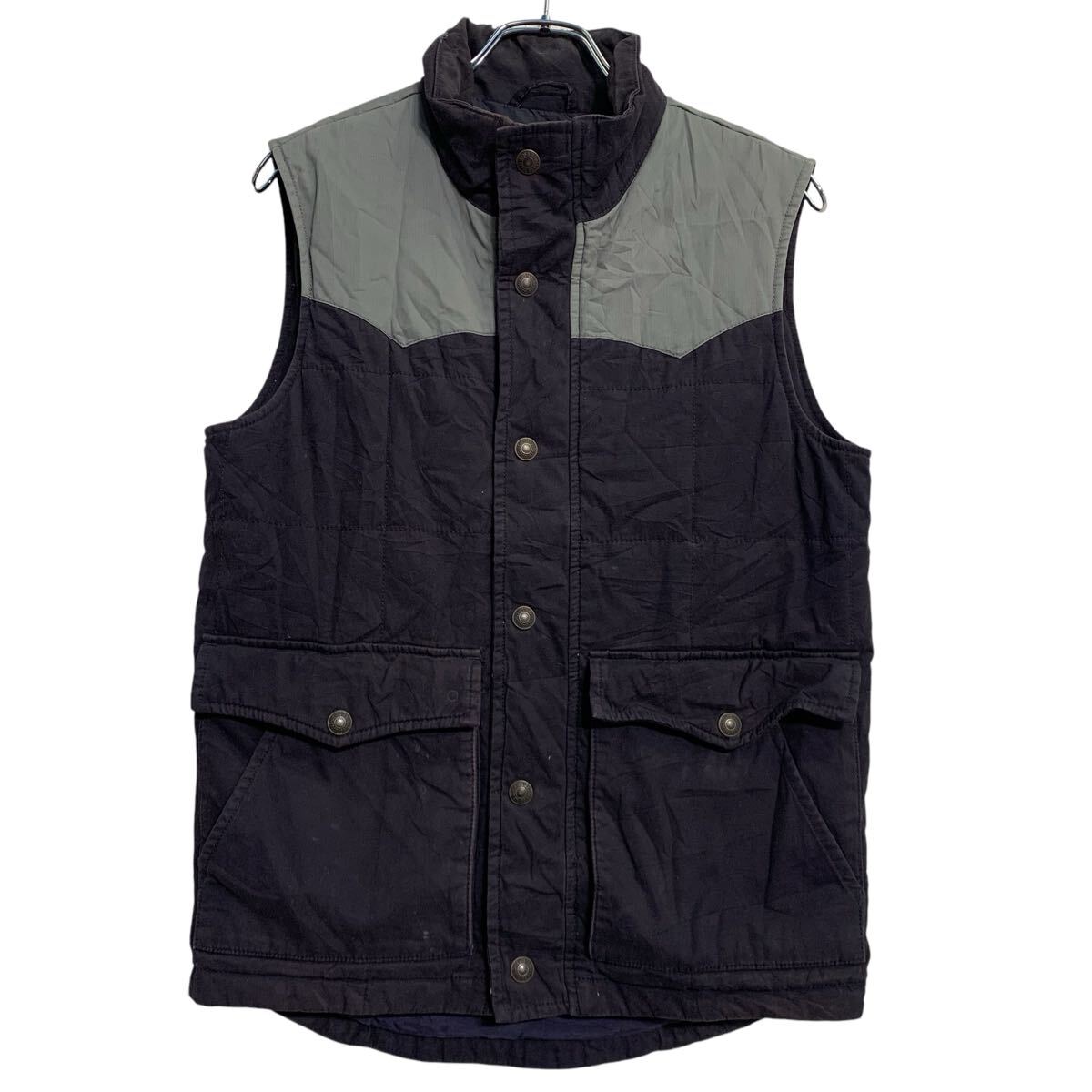 Levi's 中綿ベスト S ネイビー グレー リーバイス スナップボタン モックネック ポケット 秋冬 古着卸 アメリカ仕入 a701-7106
