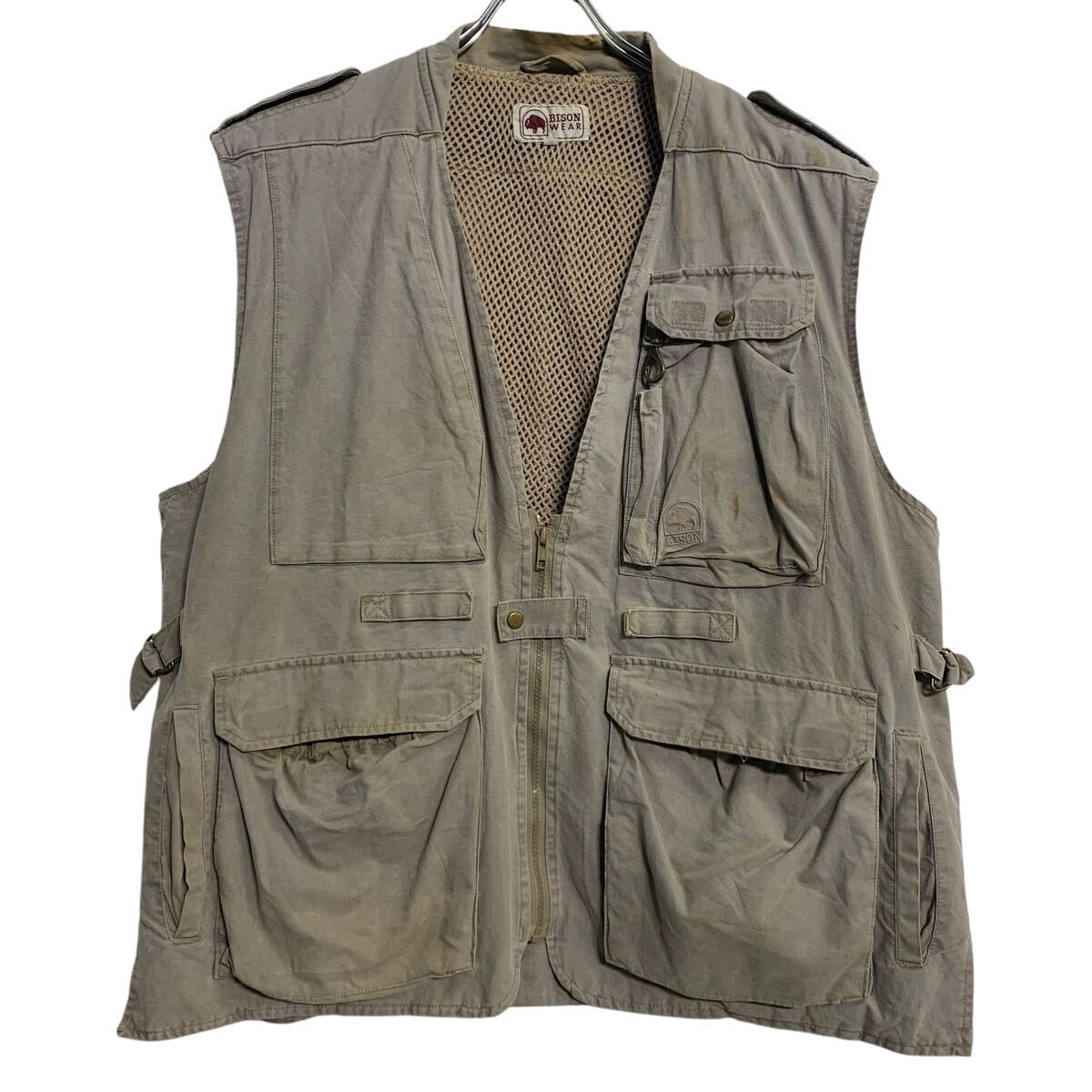 BISON WEAR ハンティングベスト XL グレー系 ジップアップ ビッグサイズ マルチポケット ワークウェア 古着卸 アメリカ仕入 a701-7192