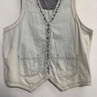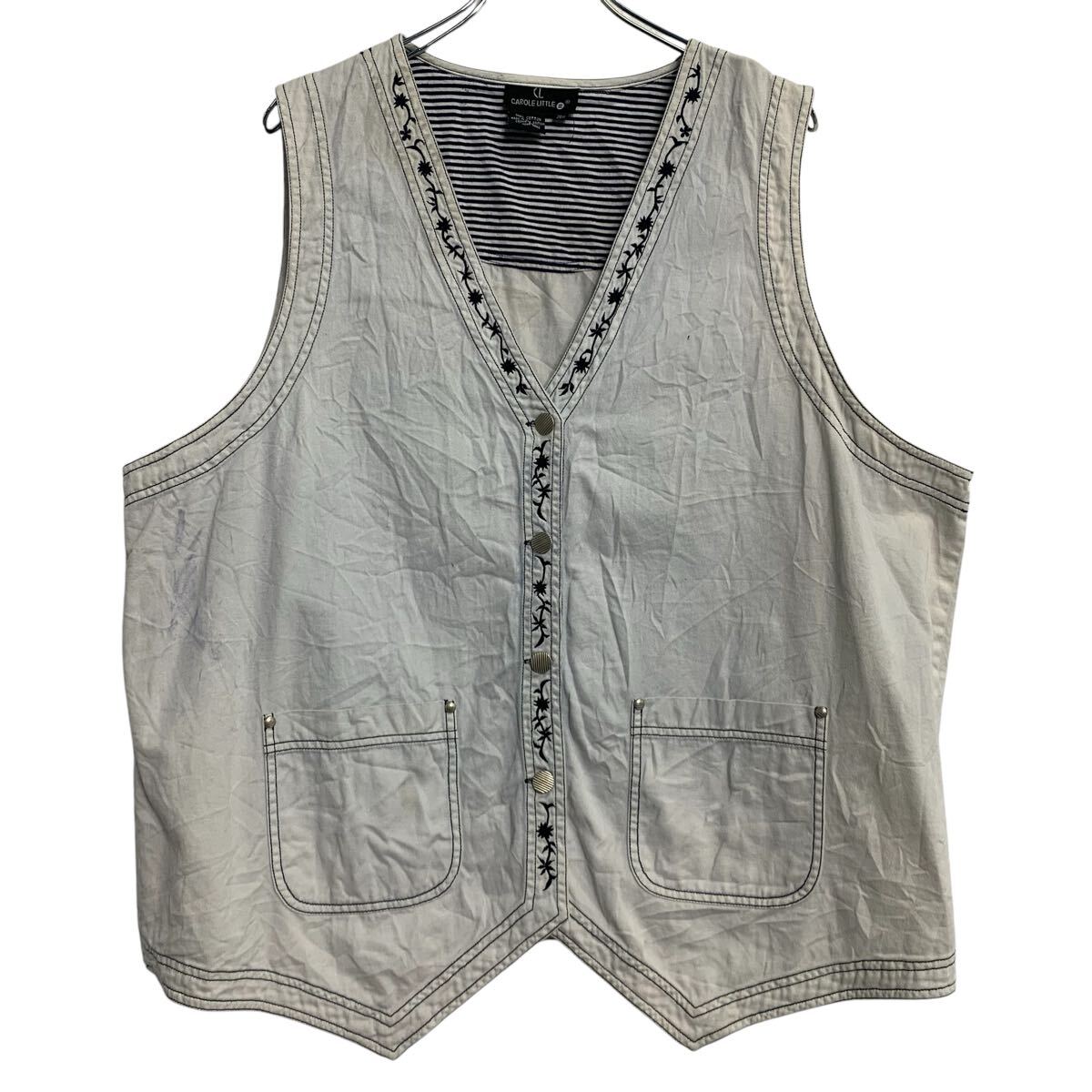 ベスト 20W L〜 ホワイト ボタン 柄 ボーダー 切替 ポケット コットン 薄手 古着卸 アメリカ仕入 a701-7198
