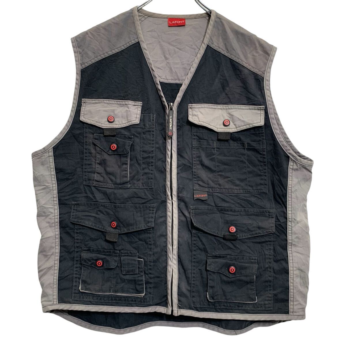 LAFONT フィッシングベスト L〜 ブラック グレー ジップアップ ワンポイント ロゴ マルチポケット 古着卸 アメリカ仕入 a701-7317