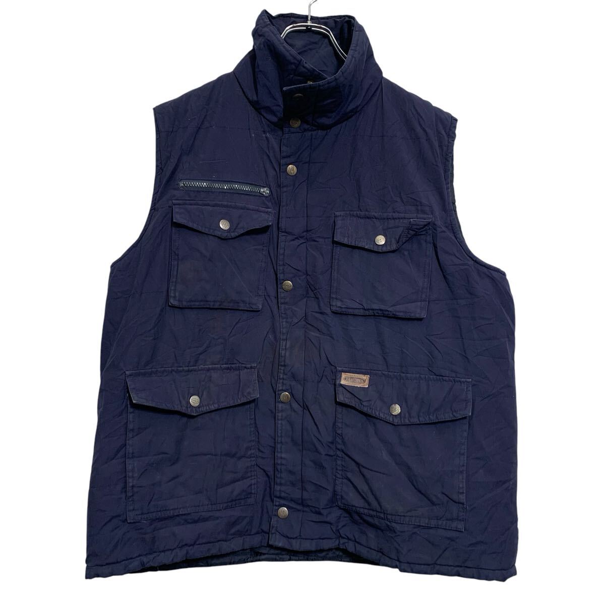 中綿ベスト L〜 ネイビー ジップアップ スナップボタン モックネック 胸ポケット マルチポケット 秋冬 古着卸 アメリカ仕入 a701-7323