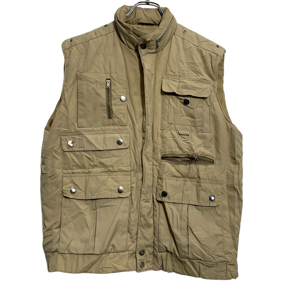 Wind crest 中綿ベスト M ベージュ ジップアップ 胸ポケット マルチポケット 秋冬 古着卸 アメリカ仕入 a701-7324