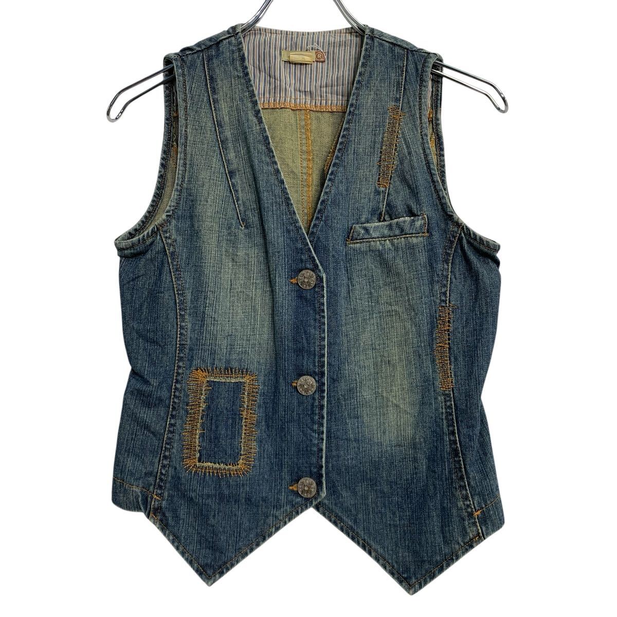 デニムベスト 4 S 程 インディゴブルー ボタン 胸ポケット カジュアル アメカジ 古着卸 アメリカ仕入 a702-7054