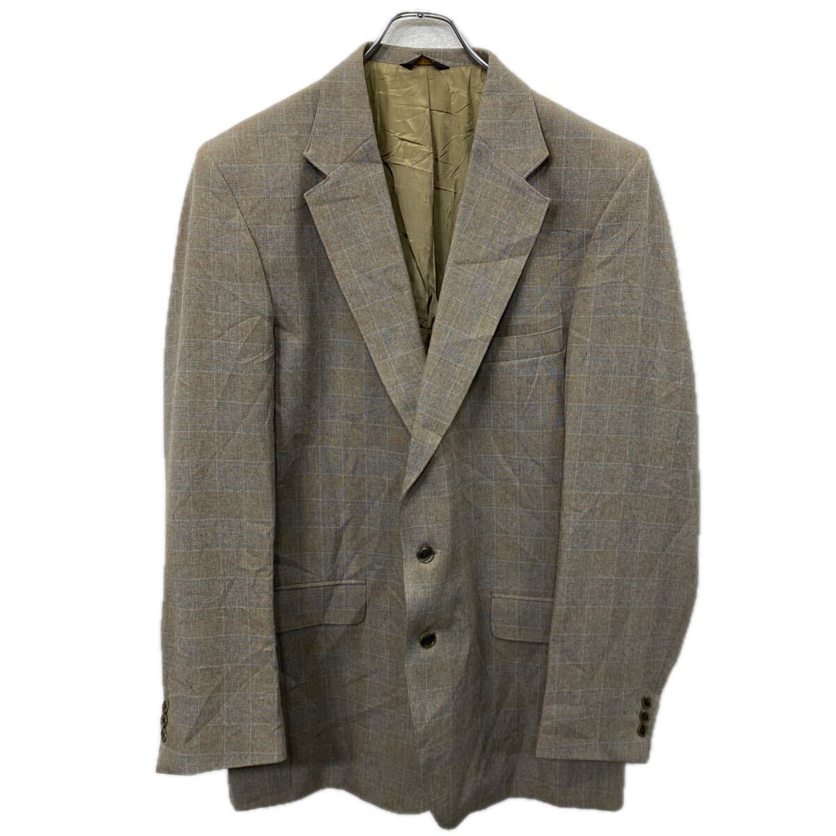 John L Blair テーラードジャケット 2XL〜 グレージュ チェック柄 ブレザー アウター 春物 a711-5538