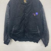 NEW LANDER スタジアムジャケット S ブラック スナップボタン ワンポイント 刺繍 レザー 切替 ブルゾン アウター 冬物 a711-5848