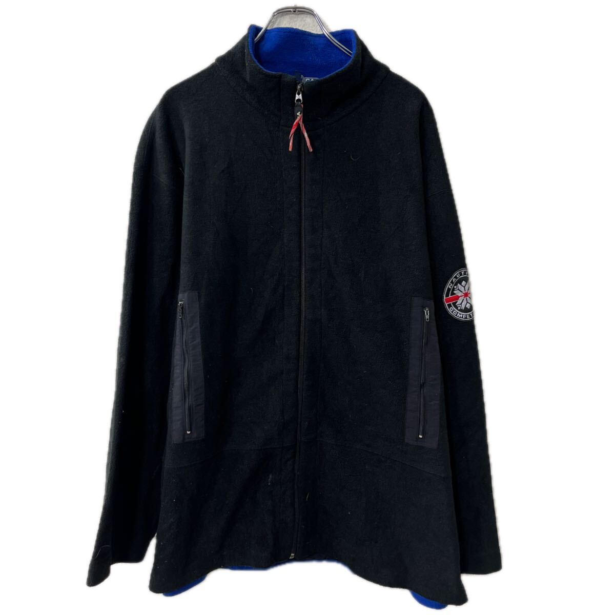 USA製 nautica フリースジャケット M ブラック ノーティカ ジップアップ フリース ワッペン アウター 秋物 a712-5261