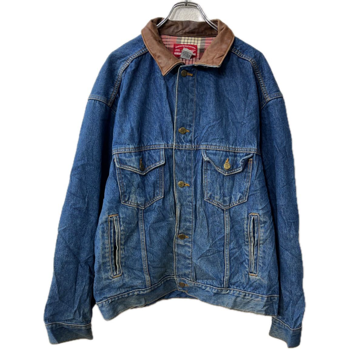 MARLBORO COUNTRY STORE デニムジャケット XL インディゴブルー 襟レザー ボタン コットン 胸ポケット アウター 春物 a712-5301