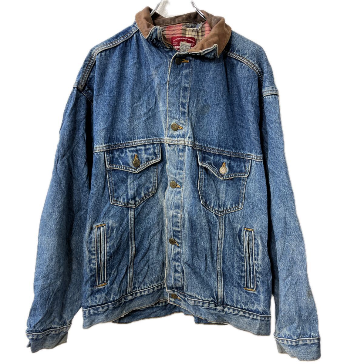 MARLBORO COUNTRY STORE デニムジャケット XL インディゴブルー 襟レザー ボタン コットン 胸ポケット アウター 春物 a712-5303