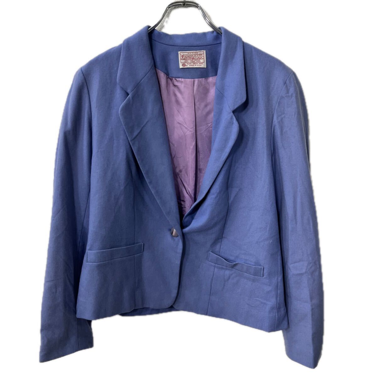 70s USA製 PENDLETON テーラードジャケット レディース L〜 ブルー系 ペンドルトン ボタン ブレザー ウール アウター 秋物 a801-5135