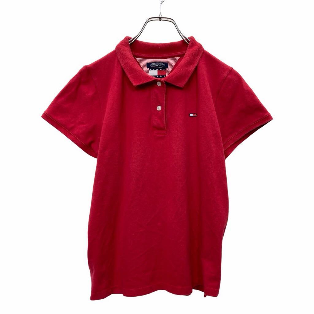 TOMMY JEANS 半袖 ポロシャツ Lサイズ トミージーンズ ジュニアサイズ 刺繍 ハーフボタン レッド 古着卸 アメリカ仕入 t2407-3104