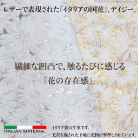 イタリア製の牛革です。光沢を施された下地に花柄が型押しされています。
