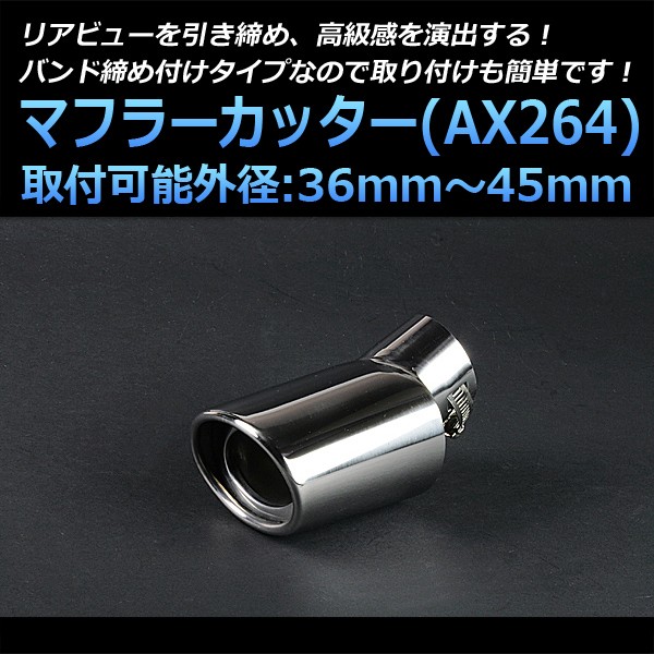 マフラーカッター ソリオ シングル 下向き シルバー AX264 汎用 ステンレス 取付外径36〜45mm スズキ