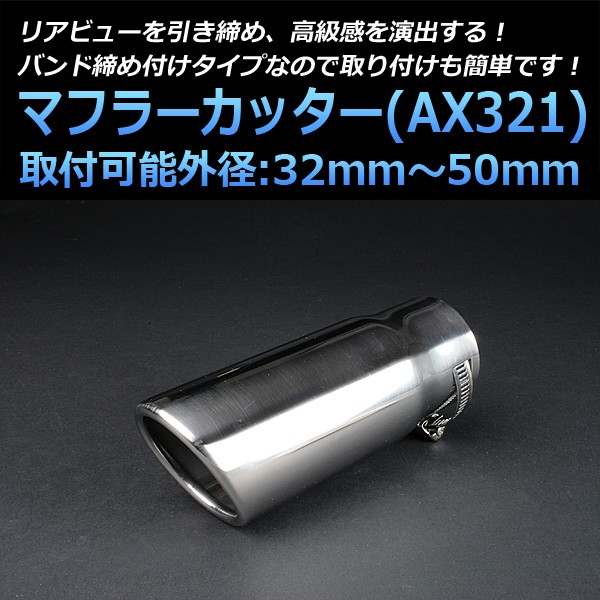 マフラーカッター 汎用 シングル シルバー AX321 ステンレス 取付外径32〜50mm