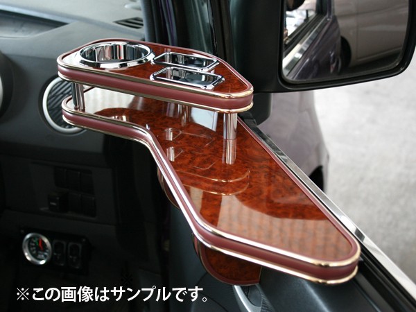 | 詳細 | 「フロントテーブルは運転席からちょっと遠い」や「純正の灰皿が使いにくい」 といった声を見事にクリアしたサイドテーブルです! ドリンクホルダー、携帯電話・タバコホルダー、ドライブには欠かせない小物を収納しつつ車内をVIPに飾ります。 ※ 写真はサンプル画像 です。実際の商品は車体ごとに違いますので、あらかじめご了承くださいませ。 |