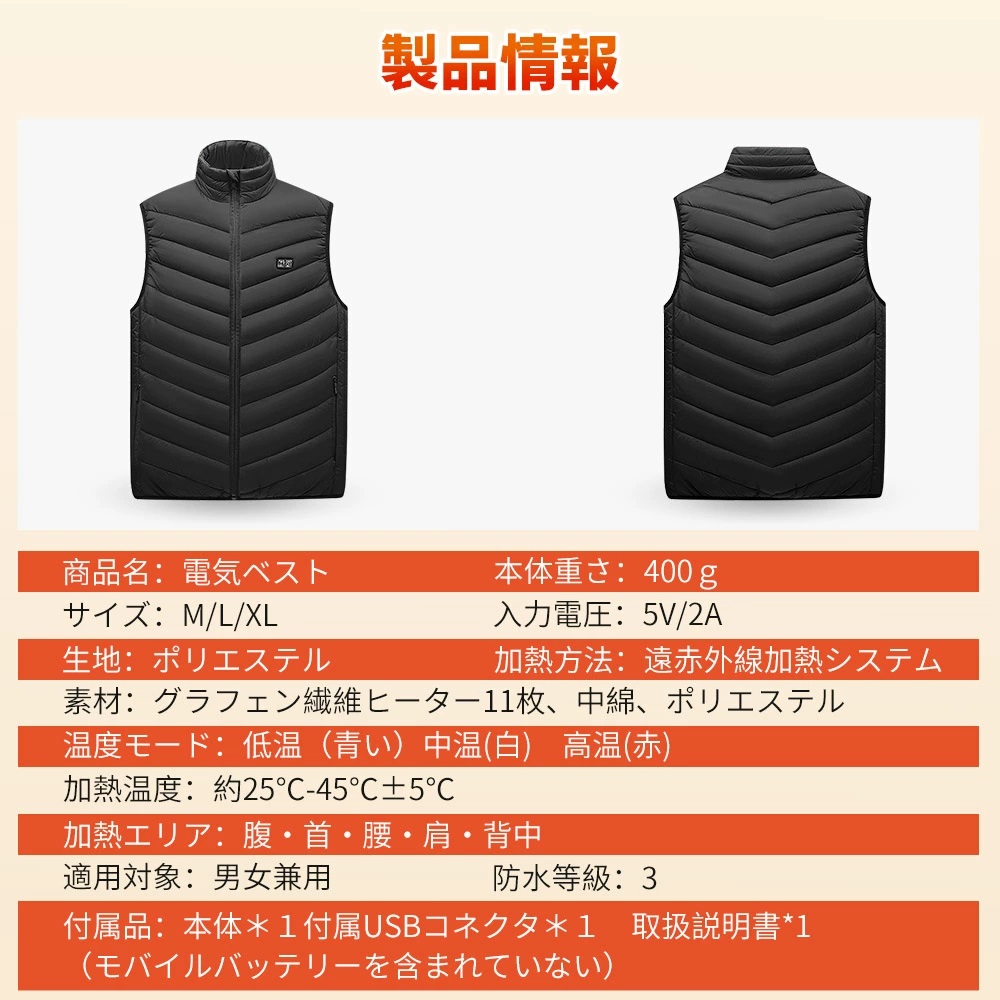 電熱ベスト 加熱ベスト 11箇所発熱 モバイルバッテリー付属 3段温度調整 速暖 水洗い可 超軽量 加熱服 男女兼用 防寒対策 電熱ジャケット 発熱ベスト 電熱ウェア 防寒