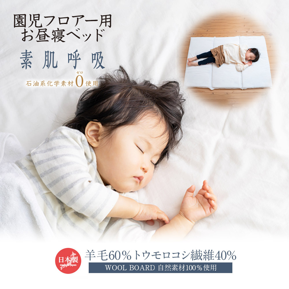 [ポイント12倍] 敷布団 子供用 マット 園児フロアー用お昼寝ベッド 羊毛 トウモロコシ繊維 自然素材100% WOOL BOARD ウールボード 日本製 新潟県産