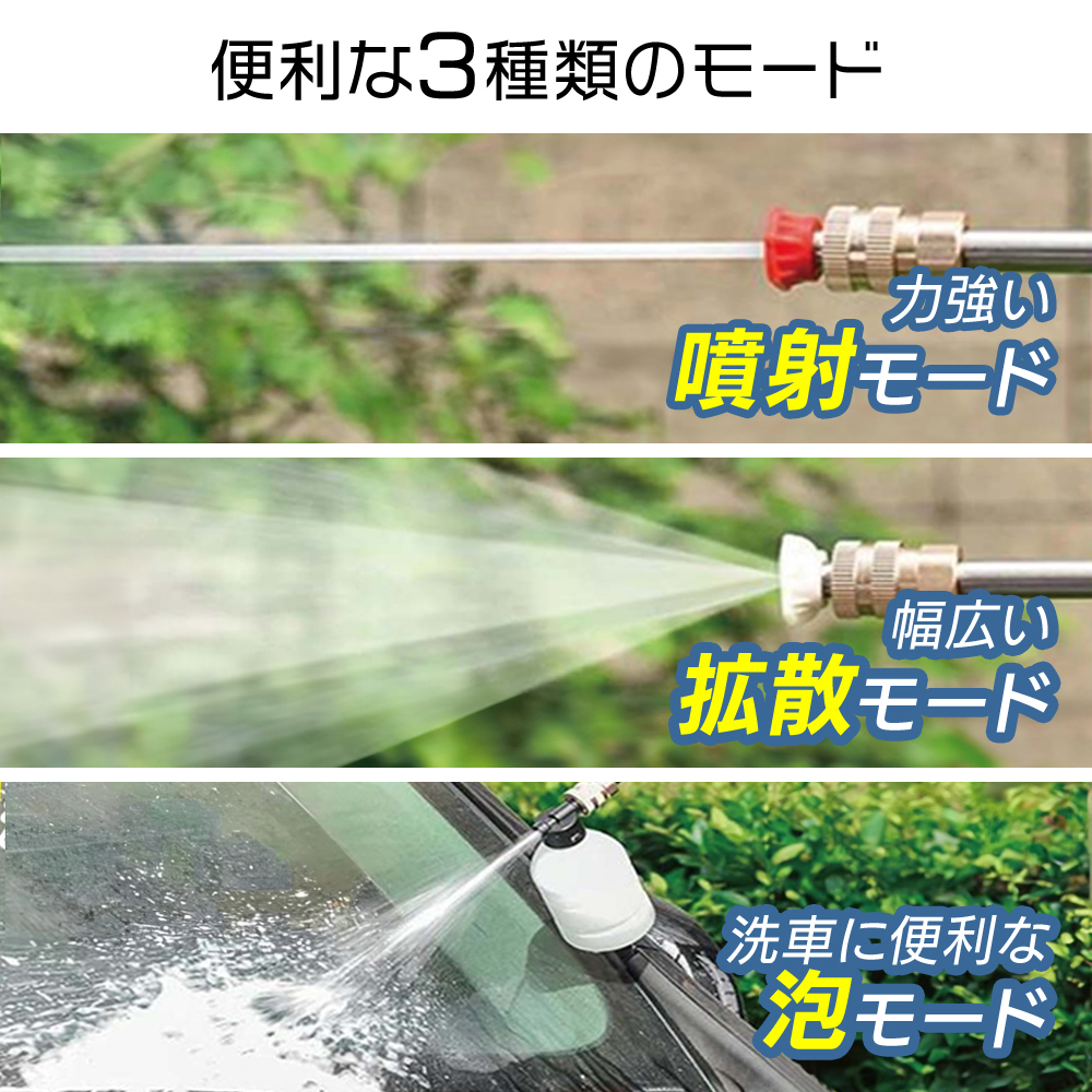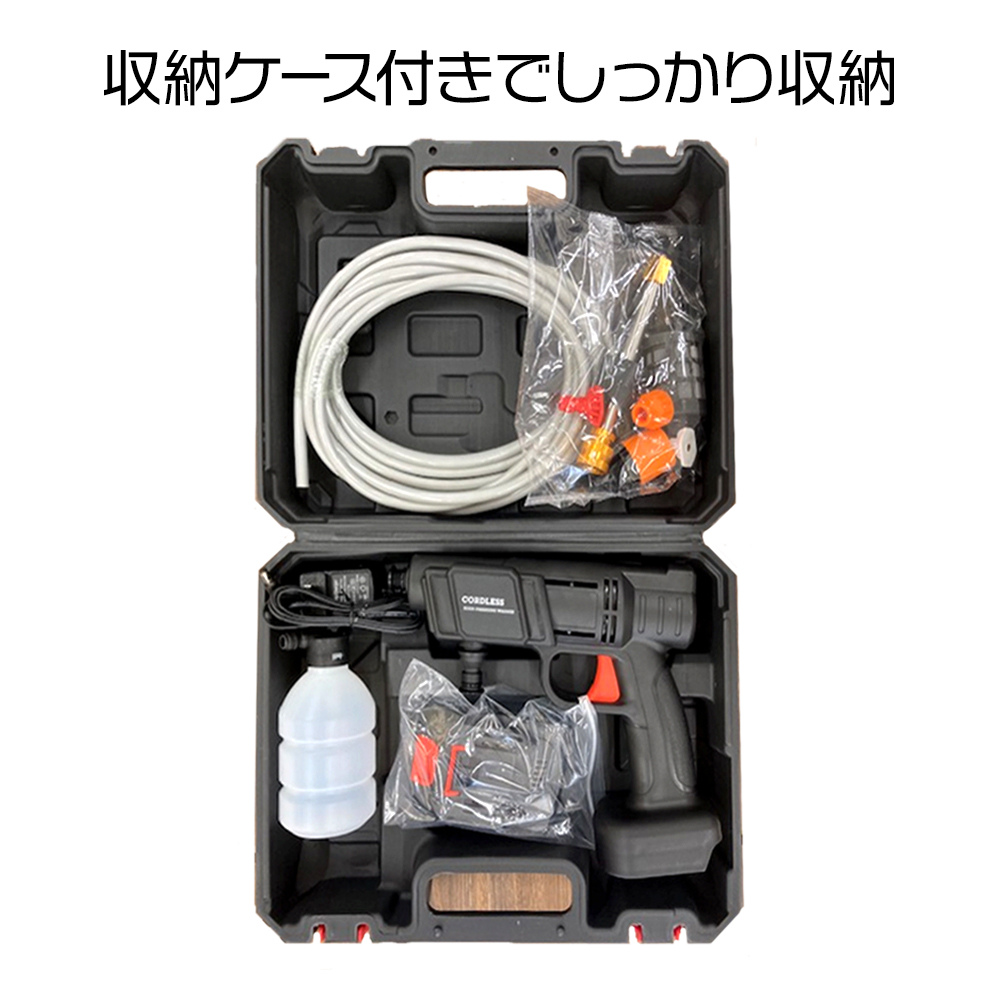 高圧洗浄機 コードレス 充電式 家庭用 5m ホース 強力 噴射 泡噴射 ケース付き nikome 充電式高圧洗浄機 NKM-KS01