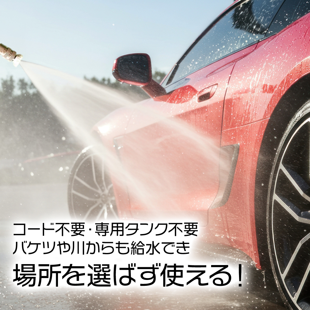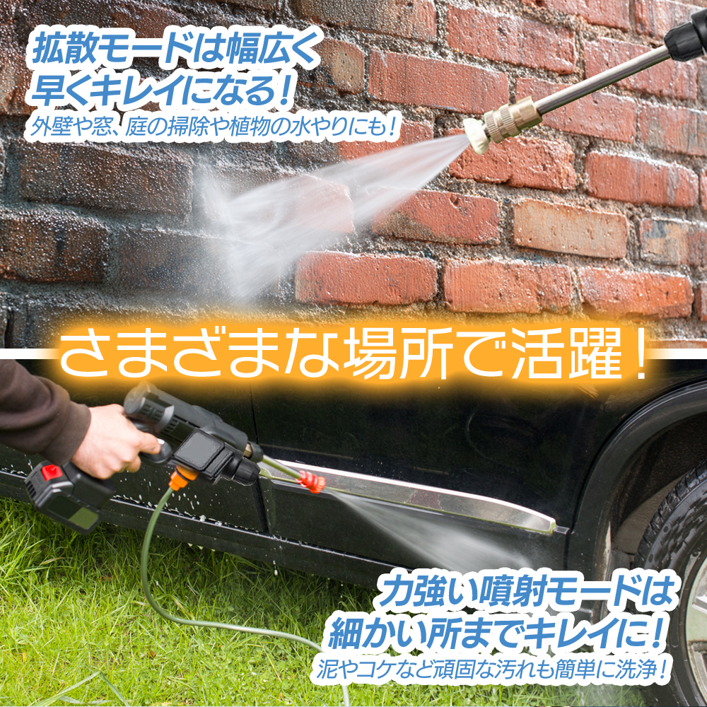 ●コードがいらない!持ち運びもできる高圧洗浄機!