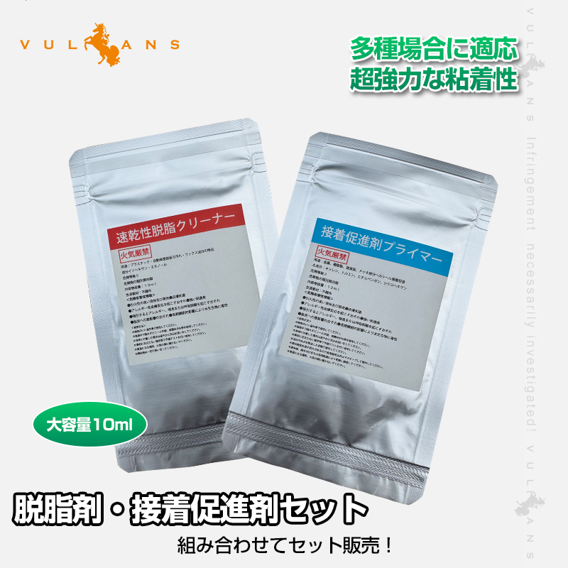 速乾性脱脂クリーナー 脱脂クリーナーを使用することで、金属や塗装面に付着したシミ、汚れなどを除去し、表面を磨き上げ、みずみずしい状態に戻します。 対象物の表面からグリースや接着剤などを早く除去し、クリーンな作業環境を提供します。 また、速乾性は待ち時間を短縮し、乾燥待ちの間に他のホコリが再付着するのを防ぎます。 接着促進剤プライマー パックを開けて取り出し、そのままで塗ることができます。 空気中の水分と反応して、時間の経過とともに高い接着性を発揮します。 塗料の密着力をアップさせるプライマーです。各種金属や樹脂製、塗装面、メッキ処理済みにも使えます。 ご注意: プライマーが塗装面に付着した場合変色や塗装が剥ける場合がでざいます。 樹脂部分に塗布した場合、乾燥後にテカリや白く変色が発生しますが、異常ではごさいません。